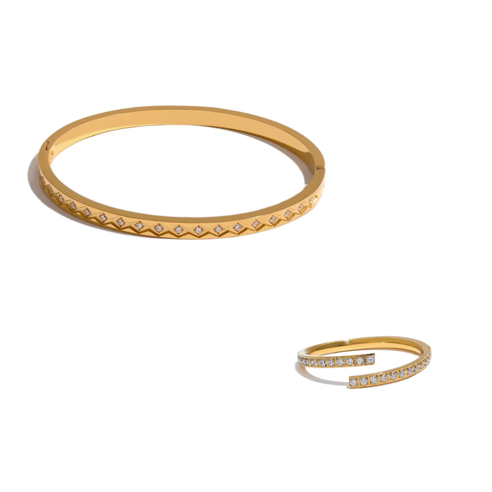 اسوارة و خاتم مطلي ذهب مع زركون مضاد للماء